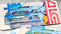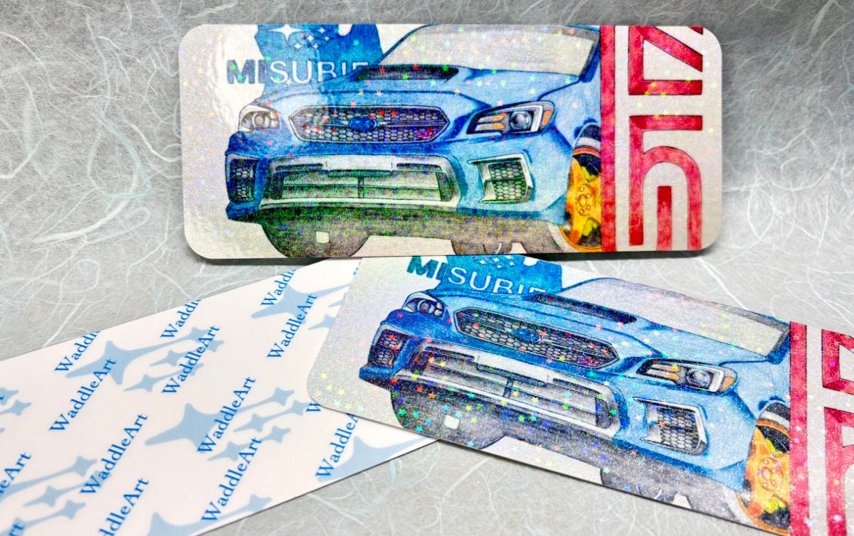 Size: 2.5in. wide by 6in. tall, and is double-sided with WaddleArt on the back and the Subaru stars.